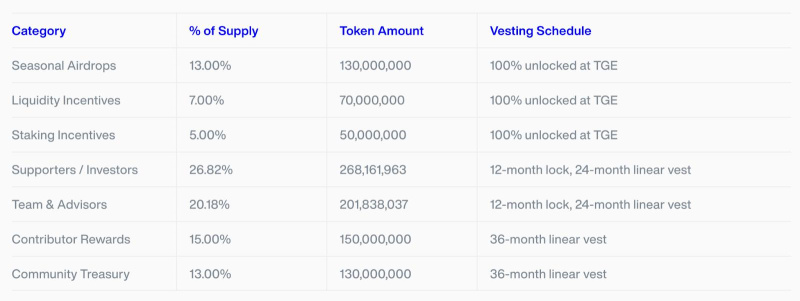 Cookie- und Kaito-Kampagnen werden weiterhin Punkte für berechtigte soziale Inhalte vergeben. Cookies Beantragungsfenster wird ebenfalls beim TGE eröffnet, wobei die Vesting-Bedingungen separat bekannt gegeben werden.