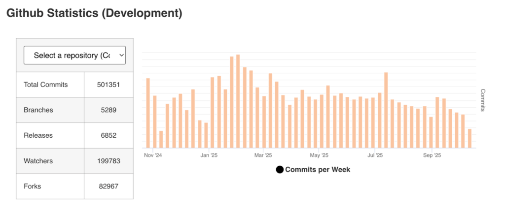 - You can also review GitHub commit activity and communication frequency on Blockspot.io. Simply search the project’s page and scroll to the “GitHub / GitHub Statistics” section. There, you’ll find direct links to repositories and activity history, while the “Social Media & News” area lets you gauge how consistently the team engages with the community.