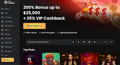 Wall Street Memes Casino combines playful branding with serious features. Licensed in Costa Rica, it supports 20+ cryptocurrencies, including BTC, ETH, DOGE, ADA, XRP, SOL, and its own $WSM token. The welcome package is generous: 200% up to $25,000, plus spins and free bets. Its 5,000+ games cover slots, live dealers, and crash titles. A standout feature is token staking, with $WSM holders able to earn up to 35% in dividends. Withdrawals are among the fastest, averaging 10 minutes to one hour. With relaxed KYC and strong sports betting options, WSM is quickly gaining popularity in 2025.