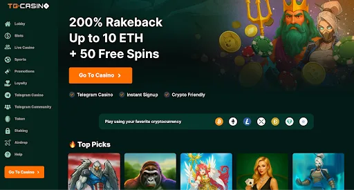 TG.Casino is built entirely inside Telegram, giving it a unique edge in privacy and accessibility. With 300+ games, including slots, live tables, and a sportsbook, it focuses on essentials rather than scale. Its $TGC token fuels perks such as staking rewards and community-driven benefits. The welcome bonus is 200% rakeback up to 10 ETH with a 40x wagering requirement. Banking is crypto-only, with on-ramps for fiat. TG.Casino’s major draw is anonymity: no KYC, instant Telegram notifications, and mobile-first convenience. While its catalog is smaller than rivals, its innovative design makes it one of the most interesting platforms of 2025.