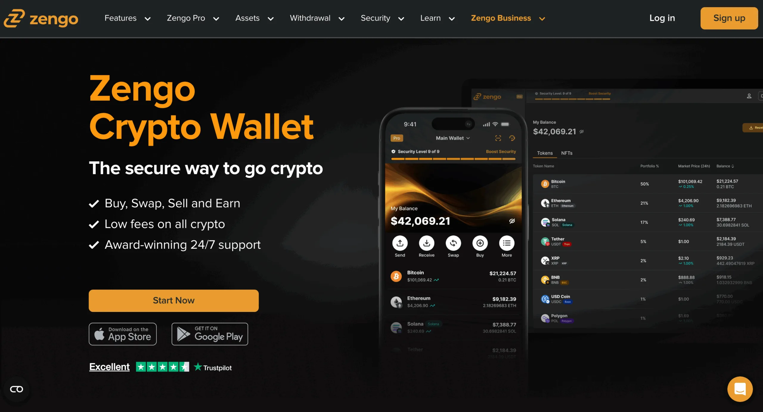 - Supports Bitcoin, Ethereum, Cardano, Solana, and more