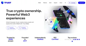 Owned by Binance but fully decentralized, Trust Wallet is one of the most versatile mobile wallets. It’s a non‑custodial app that gives you access to DeFi, NFTs, and dApps directly through its built‑in Web3 browser.