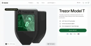 Trezor, created by SatoshiLabs, was the first hardware wallet and remains one of the most trusted names in crypto security. The Model T features a color touchscreen, while the Safe 3 (released in 2024) includes an advanced EAL6+ chip.