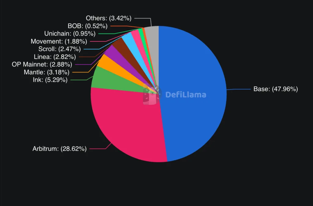 Optimistic rollups have historically made up a large portion of the total value locked (TVL) in rollups, demonstrating real usage and adoption. They now account for nearly 77% of the rollup market share, with Base and Arbitrum showcasing their significant role in Ethereum’s scalability solutions.