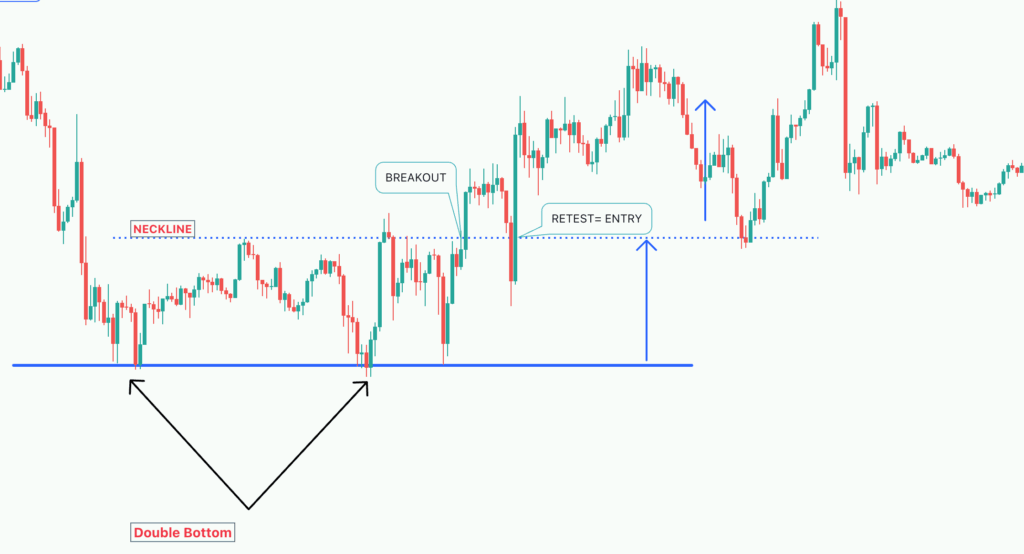A double bottom gives traders a clear method for entering and managing trades. Many wait for the price to close above the neckline before opening a position. This reduces the risk of acting on a false breakout.
