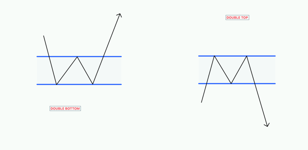 The double bottom is the opposite of a double top, which forms after an uptrend and signals a bearish reversal. While the double bottom shows that the asset has likely found strong support and is set to rise, the double top warns that resistance is strong and a decline could follow.