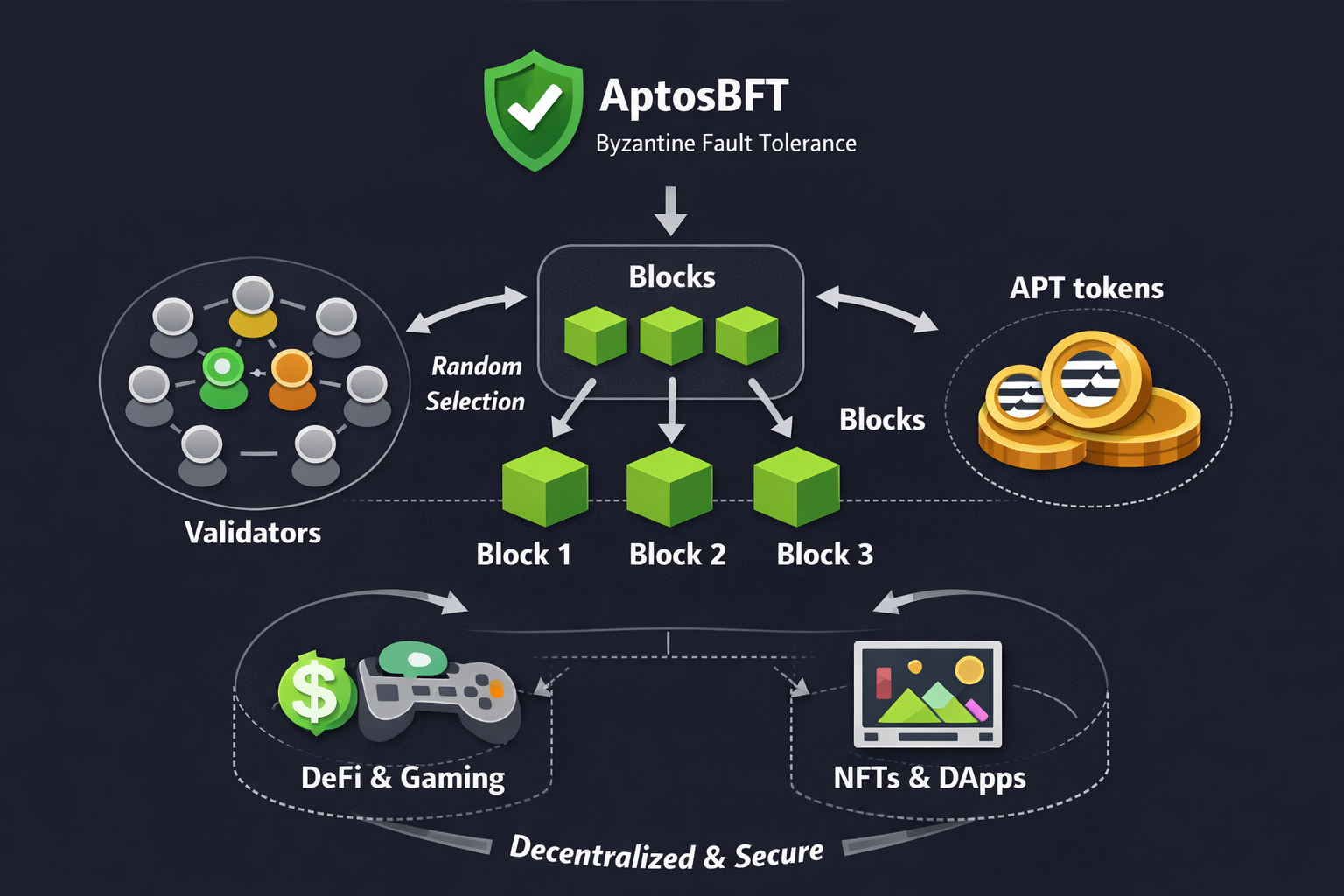 At the heart of Aptos’ design is the AptosBFT consensus mechanism, which is a form of Byzantine Fault Tolerance (BFT). BFT ensures that the network can remain operational even if some validators (the nodes responsible for confirming transactions) act maliciously or fail. This is key for maintaining trust and security in a decentralized environment.