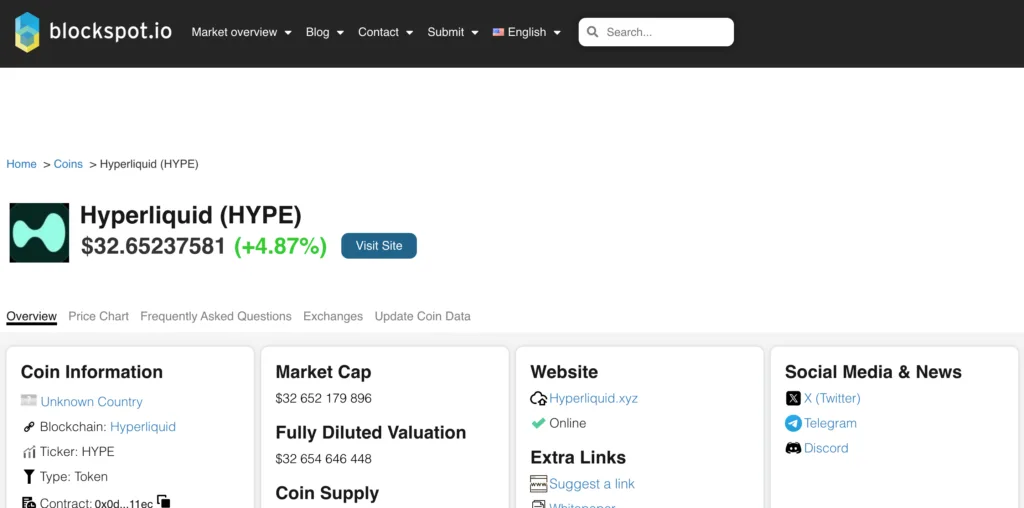 Where to obtain HYPE: Review the Markets tab on reputable data aggregators (e.g., Blockspot.io) for available exchanges and pairs, compare fees/liquidity, and verify contract details before transacting.