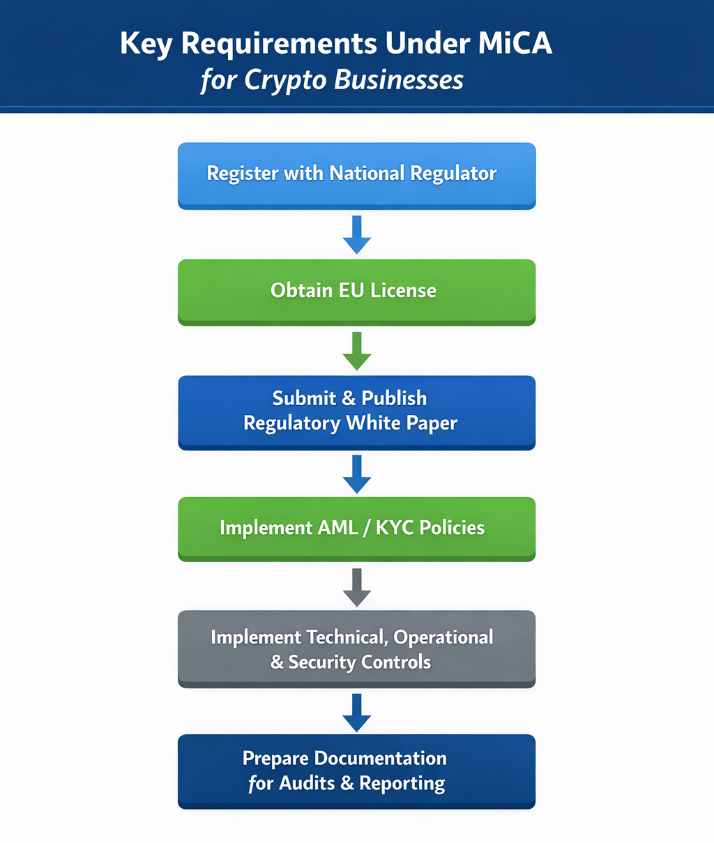 MiCA affects how crypto firms operate, advertise, and interact with users. Companies now need to: