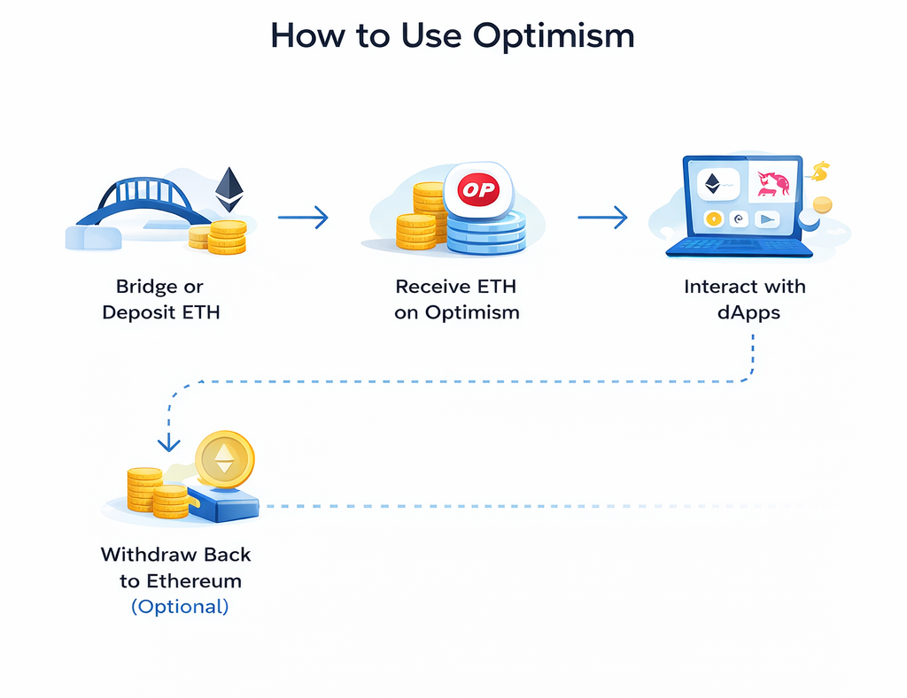 To interact with Optimism, users need ETH on the Optimism network. This can be done through multiple methods: