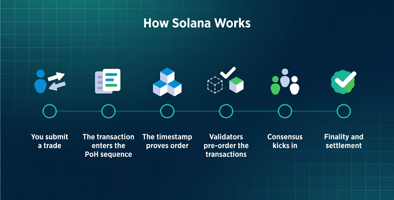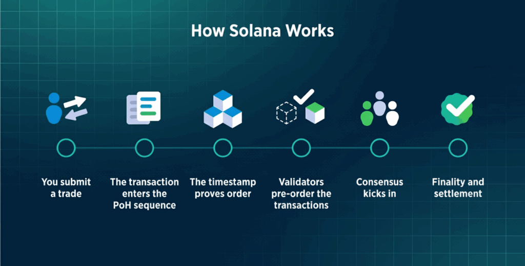 Proof of History is Solana’s most unique feature. It acts as a cryptographic timestamping system that records the order of transactions before consensus. This significantly reduces the work validators need to do, speeding up the process.