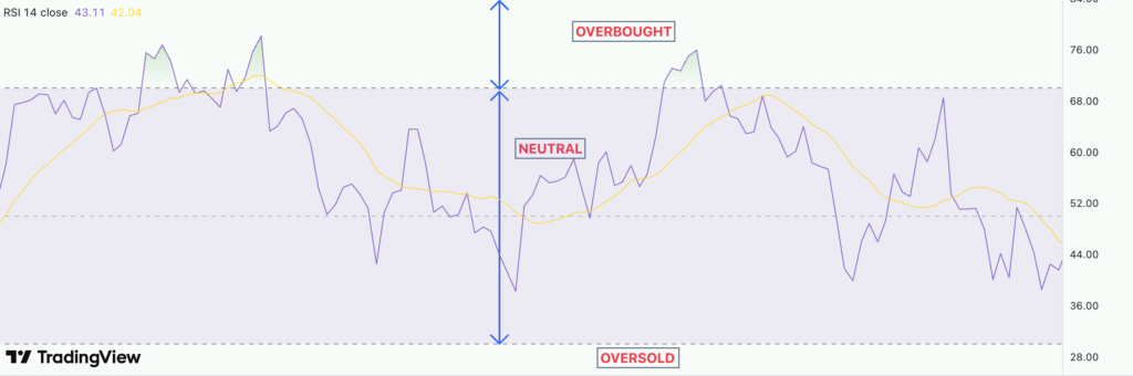 - When RSI approaches 70+, traders watch for slowing upside momentum
